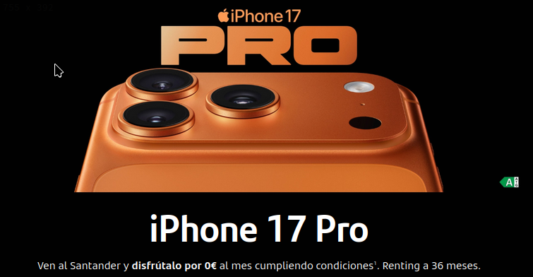 Banco Santander ha aprovechado para desempolvar una antigua promoción de fidelización de nuevos clientes de nómina con el lanzamiento del nuevo Apple iPhone 17.